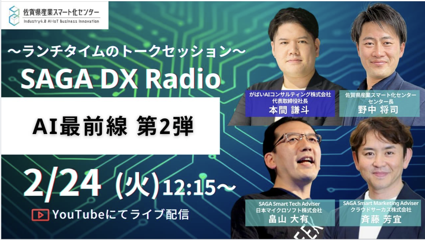 次回のSAGA DX Radio「生成AI最前線 第2弾」に出演させていただきます。
